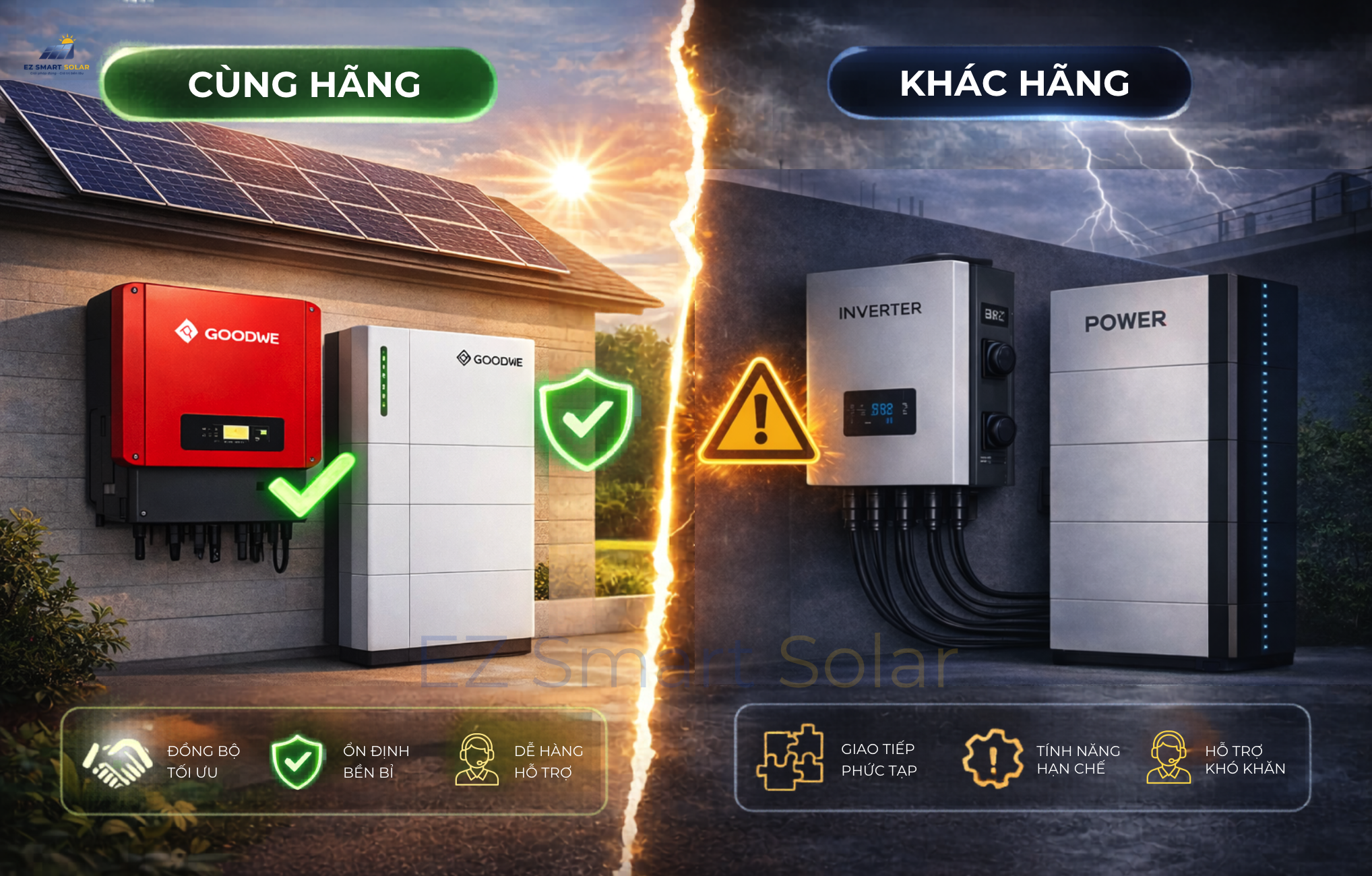 Biến tần và pin lưu trữ KHÁC HÃNG có tương thích bằng cùng hãng không?
